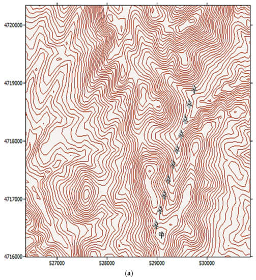 Results that apply to the cases under consideration and the knowledge from practice give us indications for the final optimisation layout. The main conclusion that can be drawn, in the case of the analysis of the placement of turbines in the respective farm that belongs to the complex terrain, is that in addition to the distance, consideration should be given to component (z). This means that in addition to distance, it is also necessary to focus on maintaining the highest points, given that the higher speed is at higher heights. In this way, it can be concluded that applying the optimisation method in mountainous terrain, in addition to distance, requires finding higher points, which represent higher speeds.