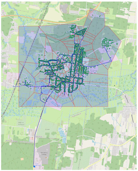 - Kruszyński, W.; Zajkowski, A. Influence of Level of Detail (LOD) in Hydraulic Model Geometry with Demand Allocation by Voronoi Polygon Method on Chosen Parameters. Environ. Sci. Proc. 2021, 9, 35. [Google Scholar] [CrossRef]