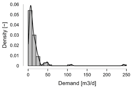 - Gwoździej-Mazur, J.; Świętochowski, K. Non-Uniformity of Water Demands in a Rural Water Supply System. J. Ecol. Eng. 2019, 20, 245–251. [Google Scholar] [CrossRef]