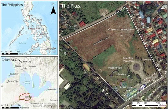 2.1. Study Area: The Jose Rizal Plaza in Calamba City