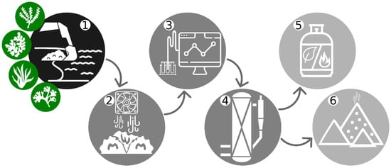 - Milledge, J.J.; Harvey, P.J. Anaerobic digestion and gasification of seaweed. In Grand Challenges in Biology and Biotechnology; Rampelotto, P.H., Trincone, A., Eds.; Springer Nature: Cham, Switzerland, 2018; pp. 237–258. [Google Scholar] [CrossRef]