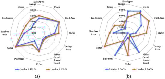 3.3. Comparative Study of Classification Results Based on Landsat 8 and Landsat 9 Images