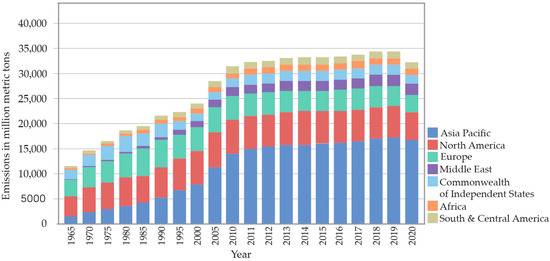 Emission of CO2 per region [13].
