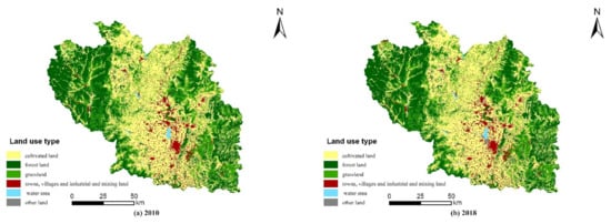 - Niu, Y. The Study of Dynamic Change of Land Use and Forecast Analysis in Changzhi City from 2000 to 2020. Master’s Thesis, Taiyuan University of Technology, Taiyuan, China, 2016. [Google Scholar]
