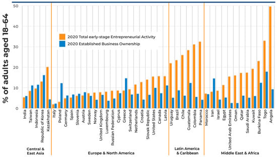 Entrepreneurial activity in 2020. Source: Global Entrepreneurship Monitor, 2020 [49].