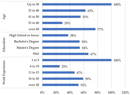 In addition, the crisis may have detrimental effects on businesses if it is not well managed [62], but it may also present an opportunity if decision makers assess it correctly [63]. It can be summarized that in a case of pandemic, the managerial team of experts that have work experience more than 16 years (81.3% of surveyed persons) and high educational level and competencies (more than 73.9% possess a master and doctoral degree) can overlap the traits. This include the idea of being properly managed to acknowledge the ability of organizations to respond to a crisis. They can respond to a crisis’ occurrence in more or less optimal ways, even if they cannot totally prevent it or control its progress. In this sense, the significant negative effects may be related to the crisis, consistent with previous evidence suggesting a social cost to self-enhancement [64], but they may also be the product of the company’s poor management [65].