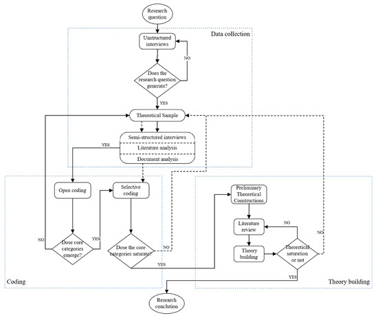 Grounded theory is a widely used tool to solve the problem of how to obtain and analyse information in social research [36]. It can discover theories and ensure that they conform to the actual situation, so it can provide relevant predictions, explanations, interpretations and applications [37]. As the research procedure is standardised and rigorous, and the theoretical discovery process is traceable and testable to a large extent, this method has strong scientific, high reliability and explanatory power.