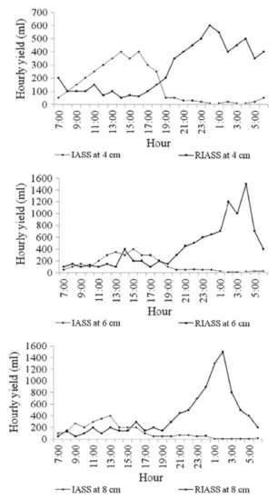 IASS and RIASS hourly yields with regard to time and at various water depths. Reprinted/adapted with permission from Ref. [15]. 2022, Elsevier.
