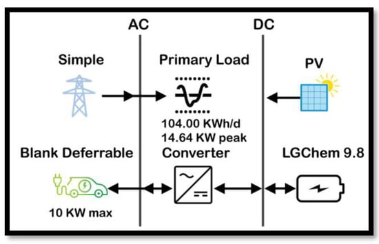 Figure 5 depicts the model of the proposed system. The PV system and battery storage are shown connected to the DC bus in the model. As it converts AC to DC and vice versa, the converter is interconnected to both the AC and DC buses.