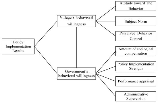 The theory of planned behavior holds that an individual will determine their behavior and is influenced by behavioral attitude, subjective norms, and perceived behavioral control [30]. However, in the implementation of public policy, because the output is public goods, the implementation of policy is jointly participated in and promoted by residents and local governments. Therefore, the behavior and willingness of farmers may be inconsistent, and the willingness of farmers to implement the policy may not be strong, although they may implement the policy [31]. Therefore, it is not perfect to use the theory of planned behavior to study the implementation of public policy, ignoring the policy implementation process of the main body of government behavior. Although some scholars have tried to expand the relevant dimensions of the theory of planned behavior to explain this problem, and even directly transform governmental policy instruments into the explanatory variables of farmers’ willingness behavior [32,33,34], this research method of mapping the policy behavior of local governments to the willingness of farmers is unreasonable. It cannot correctly reflect the role of local governments as one of the main actors of policy implementation and the impact of policy instruments on policy implementation, nor can it realize that the reasonable adjustment of policy instruments is also an important way to effectively improve the effect of policy implementation.