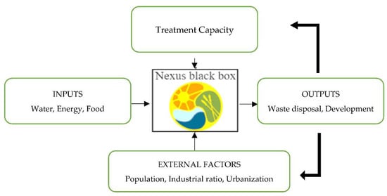 Interactions between inputs, outputs, and environmental factors: nexus black box [32].