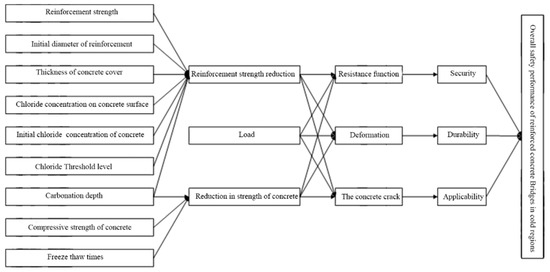A hierarchical evaluation model for constructing an overall safety evaluation network for reinforced concrete bridges in cold areas including these factors is shown in Figure 1.