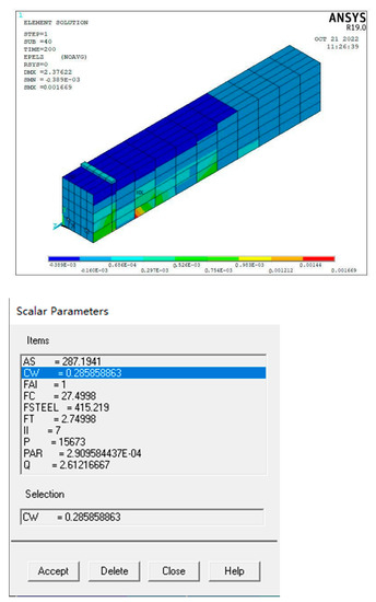 According to the modeling process of the abovementioned finite element model, a simulation system for the crack width of reinforced concrete beams is established based on the MCS method. The cross-sectional area of the steel bar , compressive strength of concrete , yield strength of the steel bar and load are used as system input, and the APDL language of Ansys is used to establish a finite element crack width calculation model. Finally, the maximum crack width of a reinforced concrete beam calculated by the finite element model is used as the system output, and a crack simulation system is constructed with the help of macro commands. The total number of simulated cracks is 500,000.