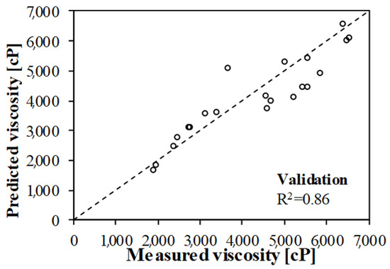 Equation (8) was used for predicting two sets of data that were not included in the analysis described above. This was intended to be an independent validation of the model. Figure 6 shows a comparison of the measured and predicted viscosities using the final MGGP models.