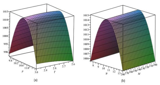 Figure 2 shows the sensitivity graphs of demand parameters and . The effects of changes in are characterized in Figure 2a, whereas the effects of changes in are represented in Figure 2b.