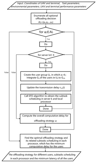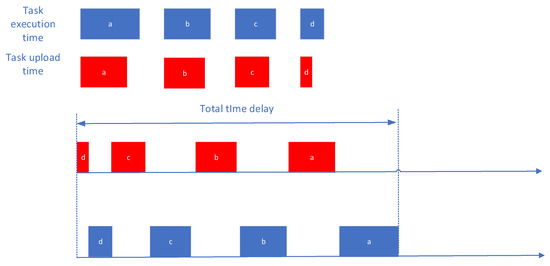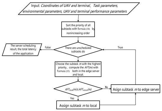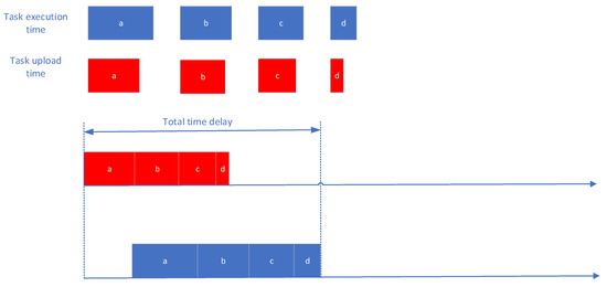 - Uninstallation decision-making problem: With the continuous enhancement of the computing and storage capabilities of mobile smart devices, some computing tasks can be carried out in real time on mobile smart devices in the urban environment, which promotes the evolution of computing models from centralized to distributed [14]. However, mobile smart devices are unable to complete computing-intensive and time-sensitive tasks alone because of the rather limited resources. Therefore, task offloading and collaboration computing are needed to offload part or all of the computing tasks to the MEC platform on the UAV. The edge node can not only directly process the computing task and then return the execution result but also pre-process the task before delivering it to the cloud center for processing in the case of good network conditions and heavy task load. Afterwards, when performing task offloading, we need to compare the time latency of offloading tasks with different processors under certain cost constraints, so that the question of where the task is to be offloaded (that is, to the local or the edge server using the UAV platform as the carrier) is considered.