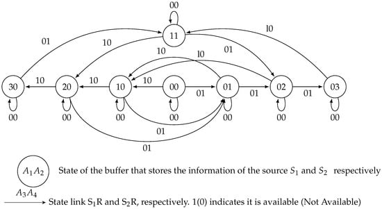 - If both links are available, the packet from is successfully sent to the destination or is stored in R according to the state of the buffer. When the buffers of the relay are full, then broadcast has priority. Similar events occur regarding the packet from :