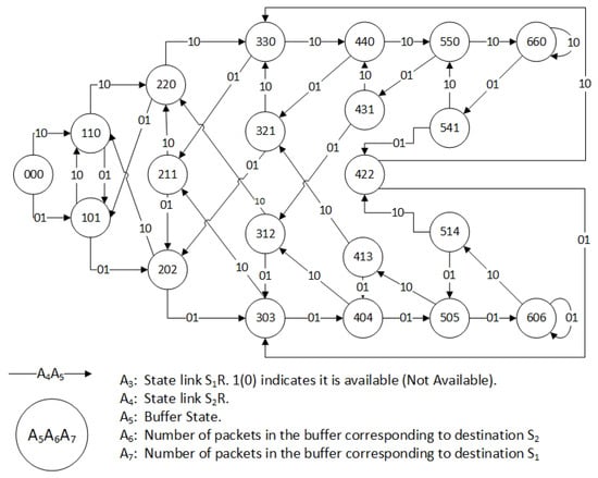 - If both links are not available, the generated packets are stored in the source buffer ( or ) or are lost according to the state of the source buffer.