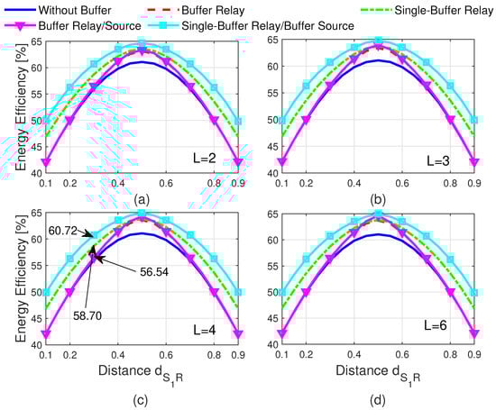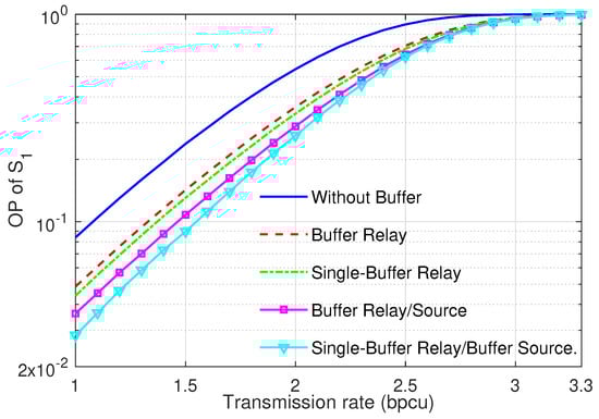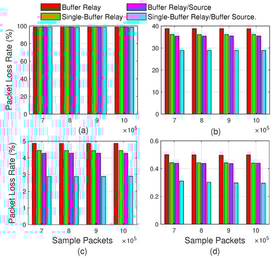 3.4. Scenario 4: Two Separate Buffers on the Relay and One Buffer on Each Transmitter Node