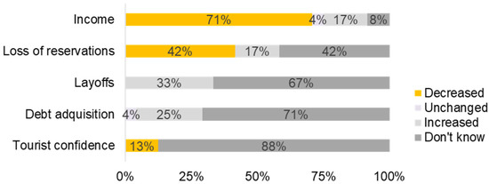 Perceived economic impacts. Two-thirds of the stakeholders mentioned the loss of income and reservations. A small group of stakeholders mentioned layoffs and debt acquisition (Figure 4).