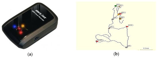 GPS device for patrolling ((a): travel recorder; (b): patrolling track sample)).