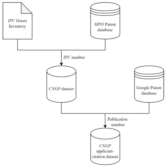 As one of the important means of environmentally sustainable development, green innovation has attracted more attention from the society and government. However, as the world’s largest patent applicant country since 2011, China has not existed a corresponding dataset to study green innovation yet. As the phased achievements of technological innovation, patents are of extraordinary significance to analyze. Hence, the establishment of a Chinese green patent dataset is beneficial to the in-depth exploration of the Chinese green innovation process and to discover significant patents earlier. The flowchart for building the CNGP applicant-citation dataset is shown in Figure 1.
