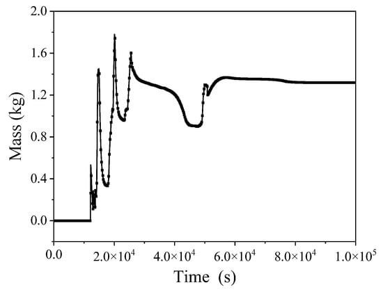 Domestic and foreign scholars have actively conducted studies on the safety technology of advanced energy [], particularly for marine nuclear energy and nuclear accidents. Safety technology guarantees the application and development of nuclear power devices. Reactor cores can melt under severe accident conditions, releasing large amounts of radioactive materials that can further spread into the cabin and the environment. Marine nuclear reactors lose power, contaminating the cabin and surrounding environment and affecting the safety of operators, the public, and the environment. Therefore, the marine reactor’s nuclear emergency response measure is an essential component of marine reactor safety. Reasonable and practical nuclear emergency response measures can guarantee workers’ safety. Implementing emergency response measures can reduce the release of radioactive substances, harmful effects on workers, and the economic loss of instruments and equipment []. According to statistics, there have been more than 300 severe global marine reactor accidents, with the proportion of loss of coolant accident (LOCA) being the highest, accounting for approximately one-third of all accidents []. It is particularly important to study emergency response measures in the event of a LOCA in a marine reactor.