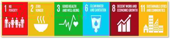 Water means money, therefore, optimizing water utilization is the main goal for sustainable development goals. Six main goals can be achieved by implementing drip irrigation techniques in Egypt agriculture sector,: G1—no poverty, G2—zero hunger, G3—good health, G6—clean water, G8—economic growth and G11—sustainability, as shown in Figure 8. It aims to enhance food security, improve nutrition in a healthy and safe way, while promoting sustainable agriculture, eradicating poverty in rural areas, improving the standard of living, increasing the competitiveness of agricultural exports, and creating job opportunities, especially for youth and women. The most important six objectives of the strategy and projects adopted by the political leadership to enhance food security are: