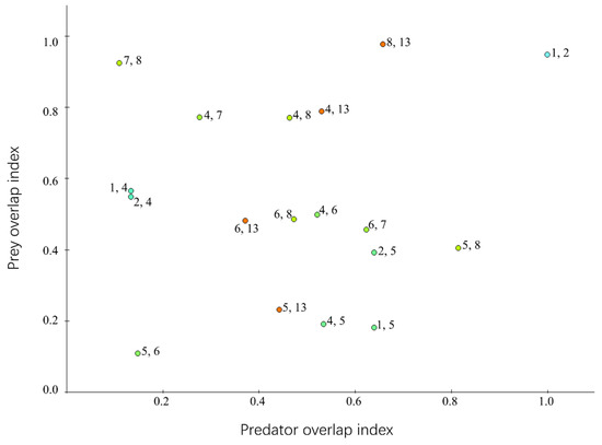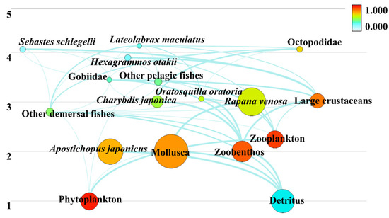 Figure 6. The niche overlap analysis of the Laizhou Bay ecosystem. The numbers on the diagram represent the numbers of the functional groups.