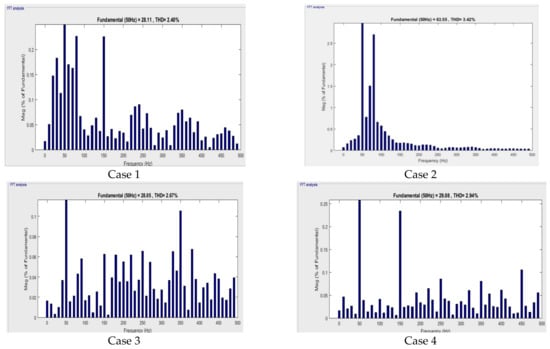 where, is the chosen gain, with a value of 20, and is the cut-off frequency, with a value is equal to the system’s frequency, at 50 Hz. The SYP’s and are generated from Equation (13) which omits PLL. STF-UVGM effectively generates SYP for distorted supply voltage of U-SPBS.