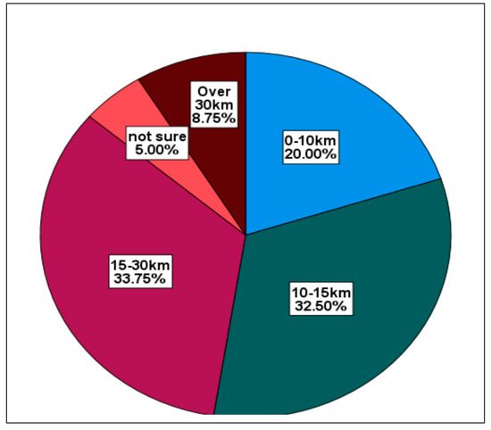 Regarding distance from the coast, a question was asked about how far are they located from the coast. The distance to those villages was also verified during the site visits which were conducted for observation purposes. As shown in Figure 6, the majority of respondents are located between 10 and 30 km from the coast (66, 25%). Few respondents indicated that they are located within a 10 km radius (20.00%), whilst (8, 75%) are located over 30 km. Owing to the history of Apartheid, properties that are located closer to the coast are mainly private properties that are largely owned by a few white establishments.