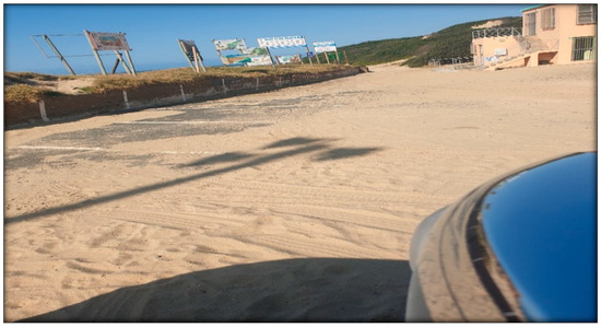 Regarding coastal infrastructure, respondents were asked about the conditions of the road to the beach and parking. According to Figure 7a, 47.50% of the respondents indicated that the conditions of the access road to the coast are bad, followed by 38.75% (somewhat good) and 13.75% (good). The access road’s bad state demonstrates conditions that are not favorable to promoting coastal accessibility. According to Figure 7b, 50.00% of the respondents indicated that parking at the beach is somewhat enough, followed by 42.50% (not enough) and 7.50% (enough). Accordingly, it was observed during the site visit conducted by the researcher that out of seven beaches in Ngqushwa municipality, only one (Hamburg) has a parking area (Figure 8). Since parking is one of the important aspects of coastal access, this demonstrates constraints on the people’s ability to access the coast.