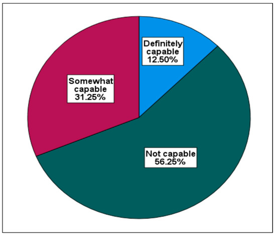 Communities must have confidence in the government institutions that are mandated to service them [53]. Respondents were asked about the capacity of the municipality to facilitate coastal access. As shown in Figure 14, 56.25% of respondents indicated that the municipality is not capable to facilitate coastal access, followed by 31.25% (somewhat capable) and 12.50 % (definitely capable).