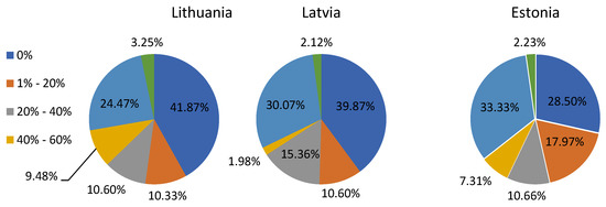 Share of respondents’ annual income generated from investment returns in Lithuania, Latvia, and Estonia (order order). Source: authors.
