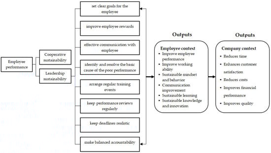 Systematic illustration of possible employee-and-company-based outcomes of employee performance through sustainable leadership.