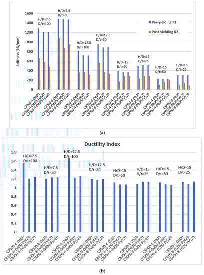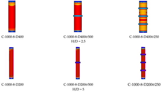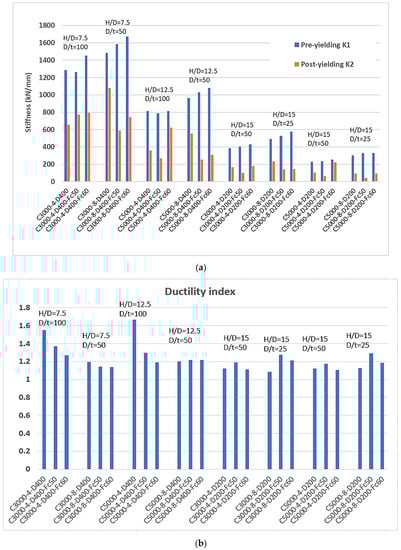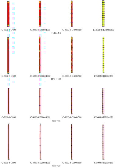 - Column-height-to-cross-section-dimension ratio (H/D), which (H) varied by 3000, 4000, and 5000 mm and (D) varying between 200 and 400 mm;