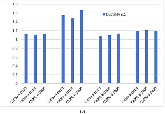 4.1. The Effect of Infilled Concrete Compressive Strength
