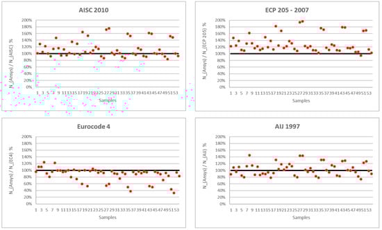 - All of the studied codes/standards are more conservative for slender sections than compact sections. In addition, they are more conservative when increasing column height–to–diameter (H/D) for compact sections and less conservative for slender sections. The different codes are more conservative for the high values of infill concrete strength and steel tube strength for either compact or slender sections.