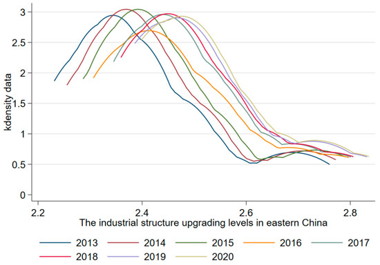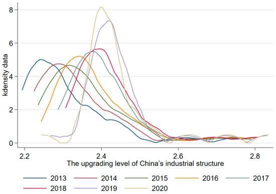 Dynamic distribution of the upgrading level of China’s industrial structure.