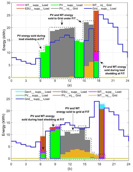 For many developing countries, shortage of grid electricity due to inadequate power generation, inefficient transmission, or outdated distribution equipment can affect the population in many ways [,]. Failure to provide a continuous supply has negative consequences on the economy, productivity, security, and social well-being []. One popular short-term measure to alleviate the severity of this problem is to impose a regimented operating condition known as load shedding. In this approach, the grid is disconnected from customers within a specified region for several hours per day. To achieve this, the utility operator removes or curtails a certain amount of load when the demand for electricity exceeds the supply capability of the network []. The idea is to minimise the deficit between generation capacity and demand while ensuring a fair level of supply available for all consumers []. Although load shedding is undesirable, it is necessary to prevent systemic power failure; in the long run, the latter can be detrimental to the power system set-up []. For many customers, the most practical mitigation of this problem is to self-install their own diesel generators or uninterruptable power supply (UPS), along with a battery backup system. Although these conventional solutions are simple and widely adopted, they inherit several drawbacks. For instance, the UPS must be charged from the grid electricity, which is already under stress from insufficient generation and over-demand. Furthermore, due to their crude installation and inferior quality, the power wastage of UPS can be as high as 25% during the charging and discharging processes []. On the other hand, diesel generators are noisy, require regular maintenance, and exhibit much lower efficiency. Generally, the cost of energy derived from small and localised generators is much higher than their grid counterpart. Moreover, the unregulated generation of the former contributes significantly to greenhouse gas emission, thus posing a serious negative impact on the environment [].