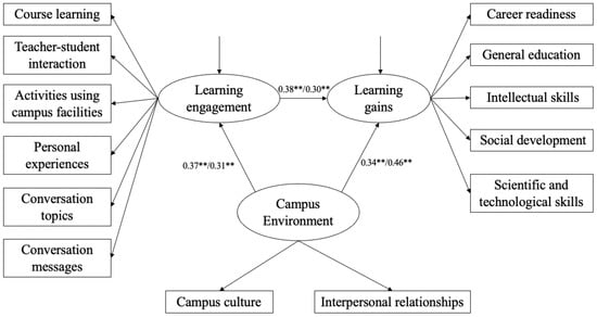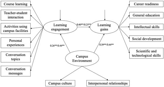 4.1. The Mediating Role of International Students’ Learning Engagement in the Relationship between College Environment and Learning Gains