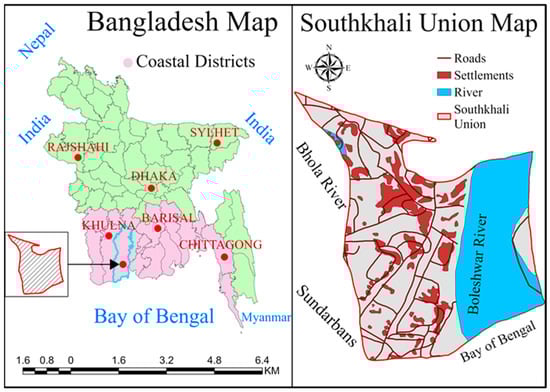In order to grasp the stated objective, the first and foremost task was to explore the demand of the disaster victims, and to that point, a field survey was conducted in the Southkhali union of Soronkhola Upazila in Bangladesh’s Bagerhat district. It is situated between 89°40′ and 90°00′ east longitude and 22°00′ and 24°60′ north latitude in the country’s southernmost section, which is part of the coastal region [20]. Moreover, climate change consequences in Bangladesh’s coastal areas are especially susceptible to tropical cyclones and storm surges, which have been recognized as “hot zones” by the IPCC [58]. Therefore, coastal communities have faced a number of major disasters in the last several decades, particularly cyclones, and our selected area is an example of the catastrophic destruction caused by cyclone SIDR, particularly in the housing sector. Furthermore, following the cyclone, several number of donor organizations stepped forward to help with the area’s housing problems, and it is estimated that 93% of the houses were rebuilt at that time [20]. However, there was a lack of sophistication in terms of floor plans, basements, and superstructure of reconstructed houses [20], which led to dissatisfaction among the victims, who preferred to make changes to their houses within a couple of months to improve habitability. Thus, it is vital to identify the resilient way in terms of PDHR, and with that in mind, the methodological section will be described in three parts.