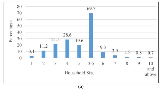 (a). Rural household size percentages [62]. (b). Rural land ownership percentages [62]. (c). Rural major occupation percentages [62].