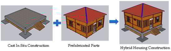 Current PDHR practices include a variety of ways to help those affected by disasters transition from temporary to permanent housing, even though temporary housing may be available within a few days due to quick disaster assistance and permanent housing may take years to establish. However, timing is crucial, as impacted victims will need to recover their livelihoods as quickly as possible and in a manner that does not jeopardize their long-term sustainability. Sustainable construction is a consideration in this context, and a hybrid construction technique (Figure 8) where the sub-structure (Structures below plinth level) construction will be done on site and the super-structure (Structures above plinth level) part will be prefabricated is recommended. In addition, the victim’s participation in the PDHR sector is exceedingly low in the context of the survey area, which would have been resulting in the discontent of victims. However, the proposed hybrid construction technique is framed in such a way that it incorporates industry, local masons, and the end-users and will be the quickest and most sustainable construction approach. In the next part, we’ll go through the proposed house’s construction features in incredible detail.