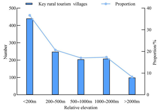 Figure 6. The relationship between the number of key rural tourism villages and relative elevation in China.