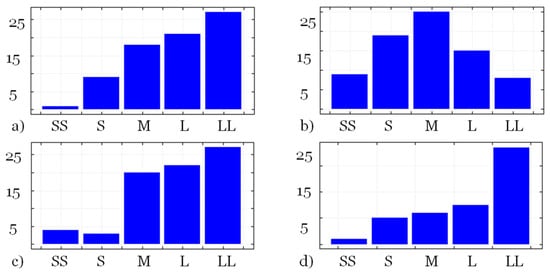 Frequency of using the most significant learning strategies: (a) lesson review, (b) emotion control, (c) bibliography reading, and (d) class attendance; SS: very small; S: small, M: medium, L: large, and LL very large.
