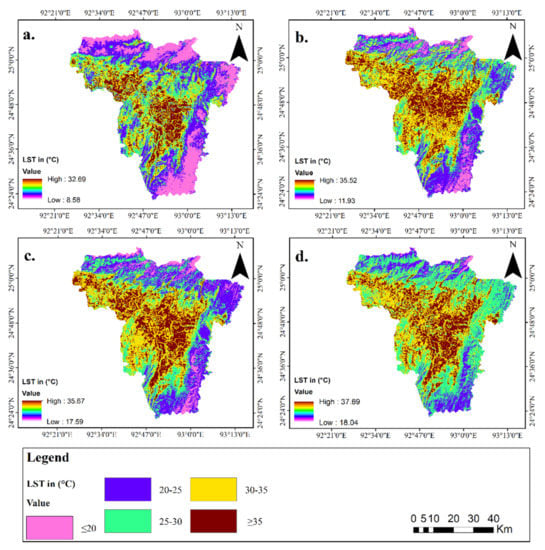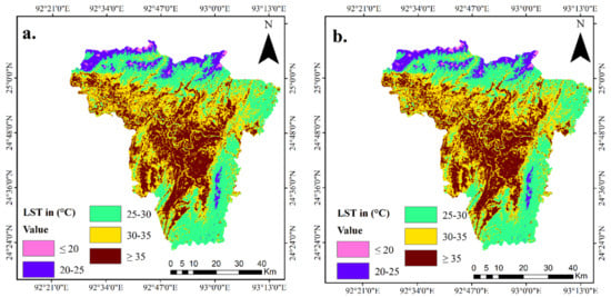 The calculated LST, which is in kelvin, was converted into Celsius using Equation (9)