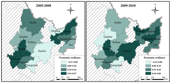 Agricultural economic resilience of 12 cities in Sanjiang Plain and Songnen Plain from 2005 to 2010.