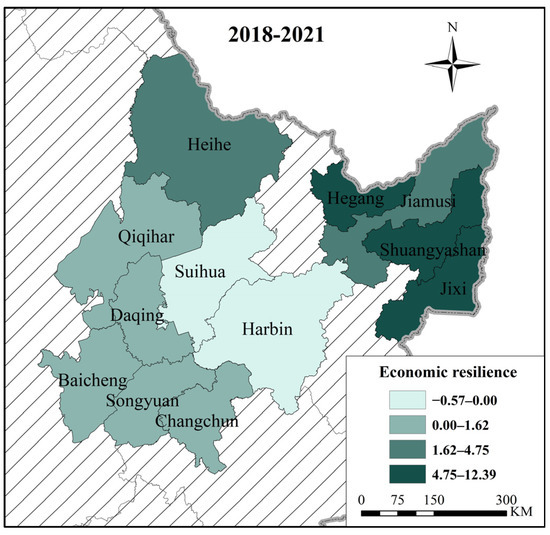 Agricultural economic resilience of 12 cities in Sanjiang Plain and Songnen Plain from 2018 to 2021.