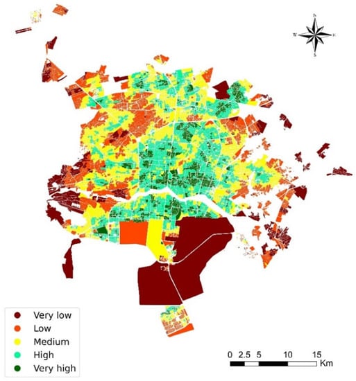 The final map of spatial accessibility in the study area was obtained from a KNN ML clustering and is presented in Figure 10.